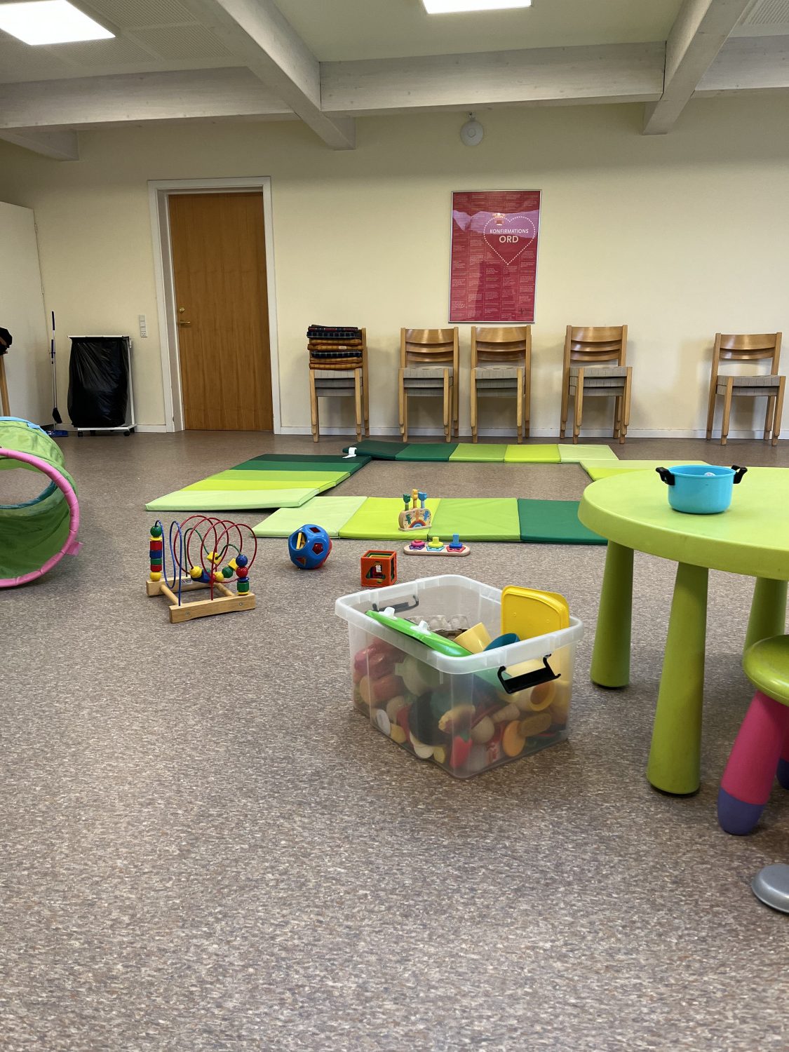 Klar til leg i et af de lokaler vi bruger i vores legergruppe. Her leger fortrinsvis børn i alderen 2-3 år.