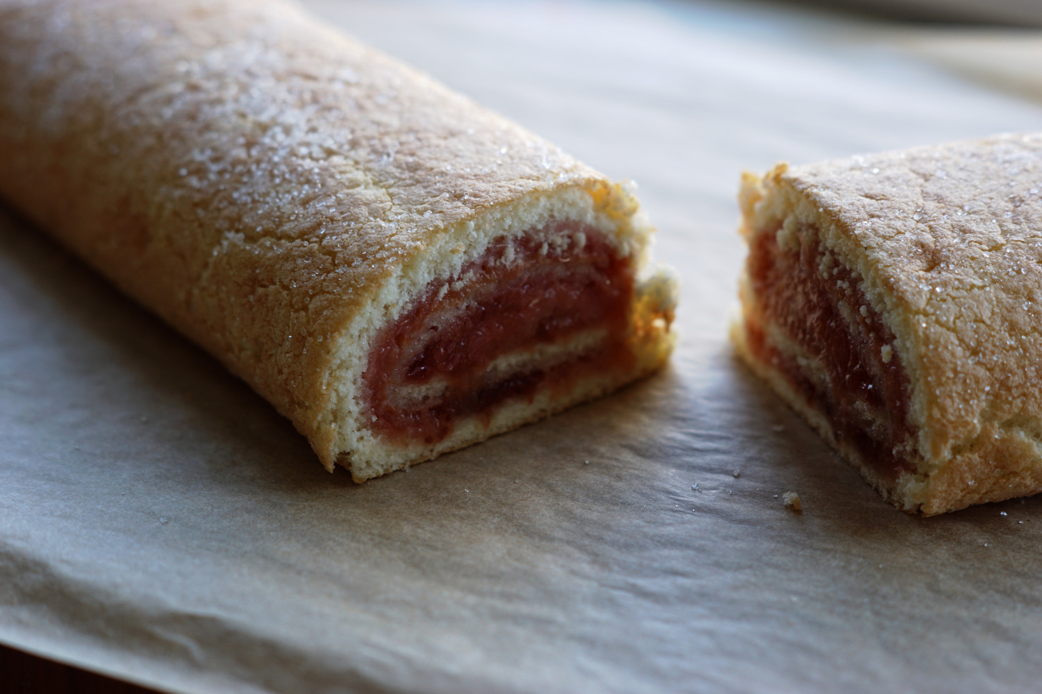 Hvis det du forbinder med roulade er de oversøde og tørre af slagsen som findes i langtidsholdbare vakuumindpakket versioner i supermarkedet, så skal du altså give den hjemmebagte version her en chance. Du vil ikke fortryde det.