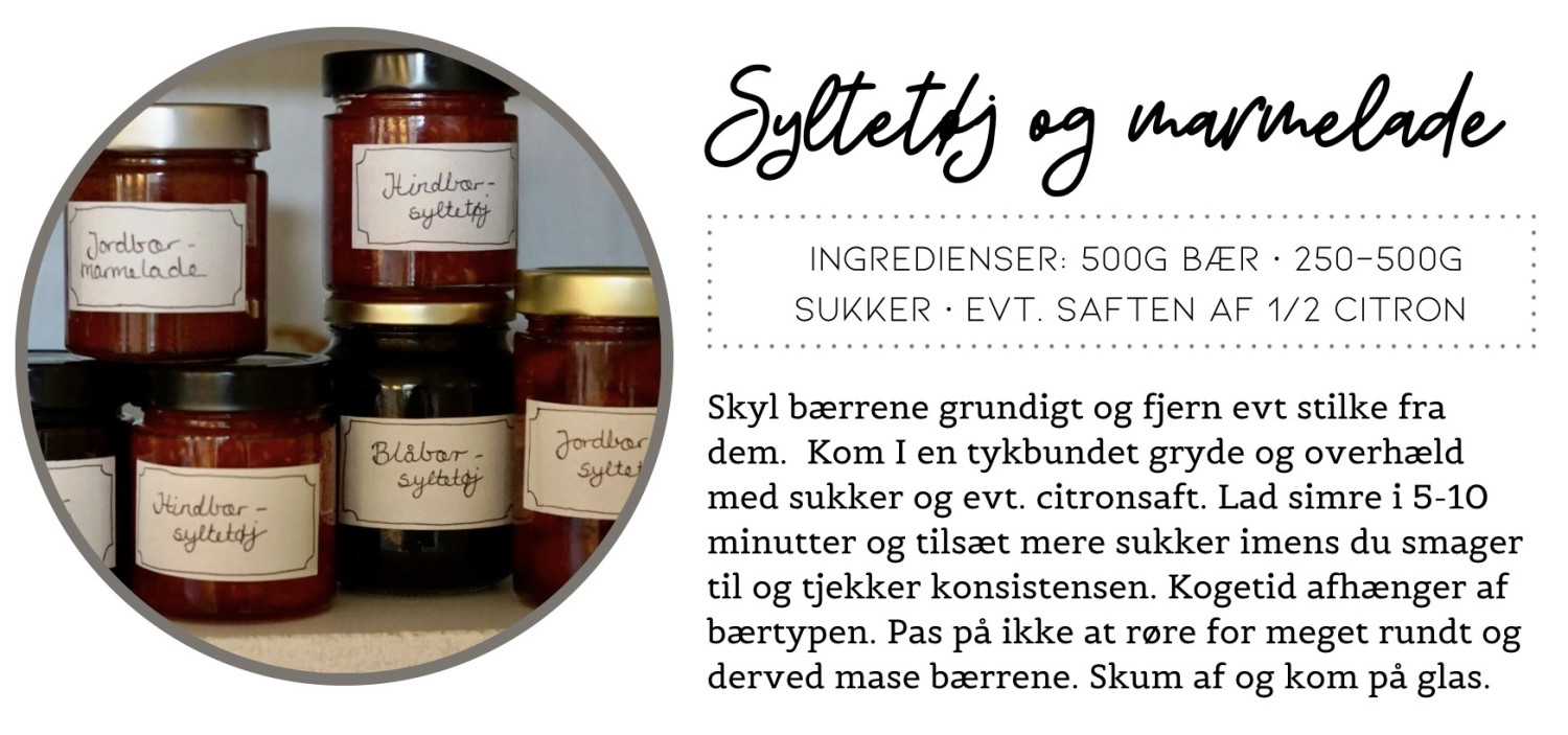 I indlægget her kan du finde grundopskrifter på syltetøj/marmelade, kompot og sirup.