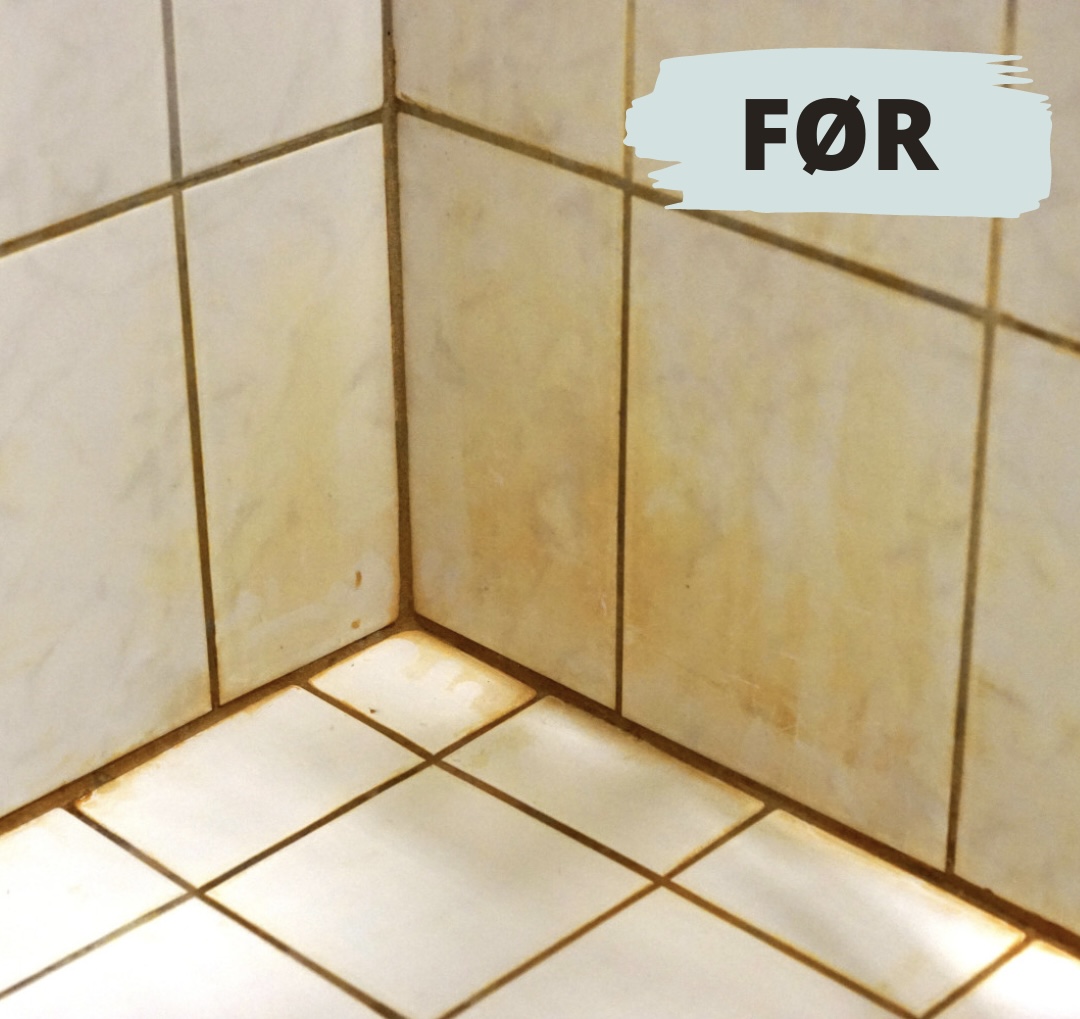 OBS! Rengøringstips benyttes altid på eget ansvar. Den benyttede blanding i indlægget her er egnet til at bruge på keramiske klinker og glas med hårde fuger (mørtel) imellem. Den må ikke benyttes på natursten som f.eks. kalksten, terrazzo eller marmor. Det er vigtigt, at man fugter fugerne først, så de er fugtmættet og ikke suger for meget af blandingen (ligesom med alle produkter til kalkbehandling). Dette skyldes at mørtelfuger indeholder kalk, som opløses af syre. Derfor er det vigtigt fugerne er våde. så de ikke suger syreholdige produkter man gør rent med.
