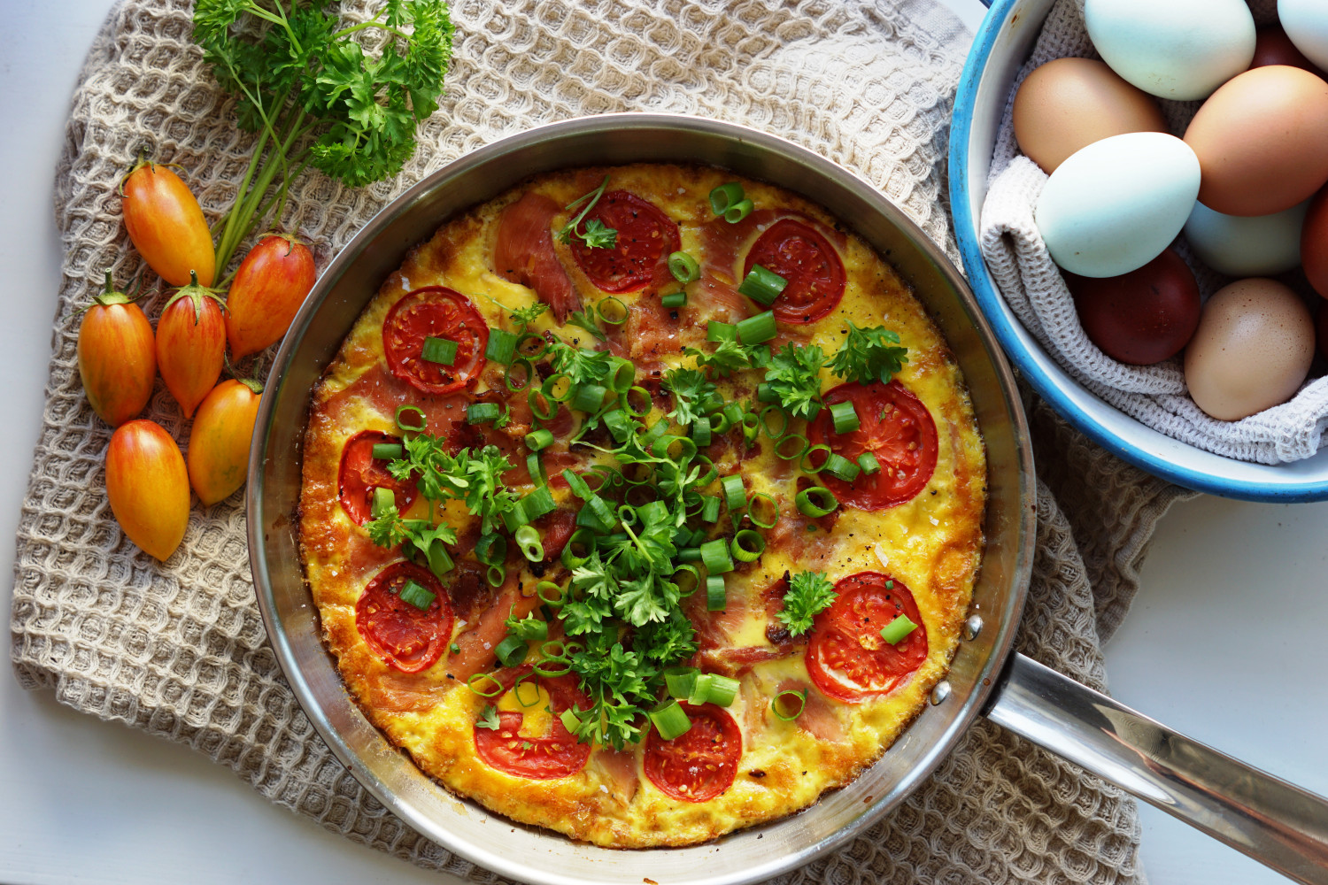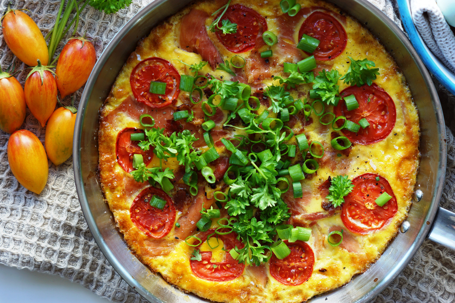 Gør gerne din æggekage ekstra indbydende med friske krydderurter på toppen (persille purløg eller fintsnittet forårsløg).