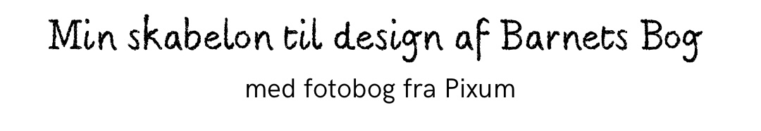 Jeg har lavet min fotobog i Pixums Fotounivers Software, som jeg anbefaler, når der skal fremkaldes fotobøger med meget personalisering og meget tekst. Det er et program som du nemt downloader til din computer, og så har du nærmest uendelige muligheder for at designe din egen helt unikke og flotte fotobog. DOWNLOAD HER.