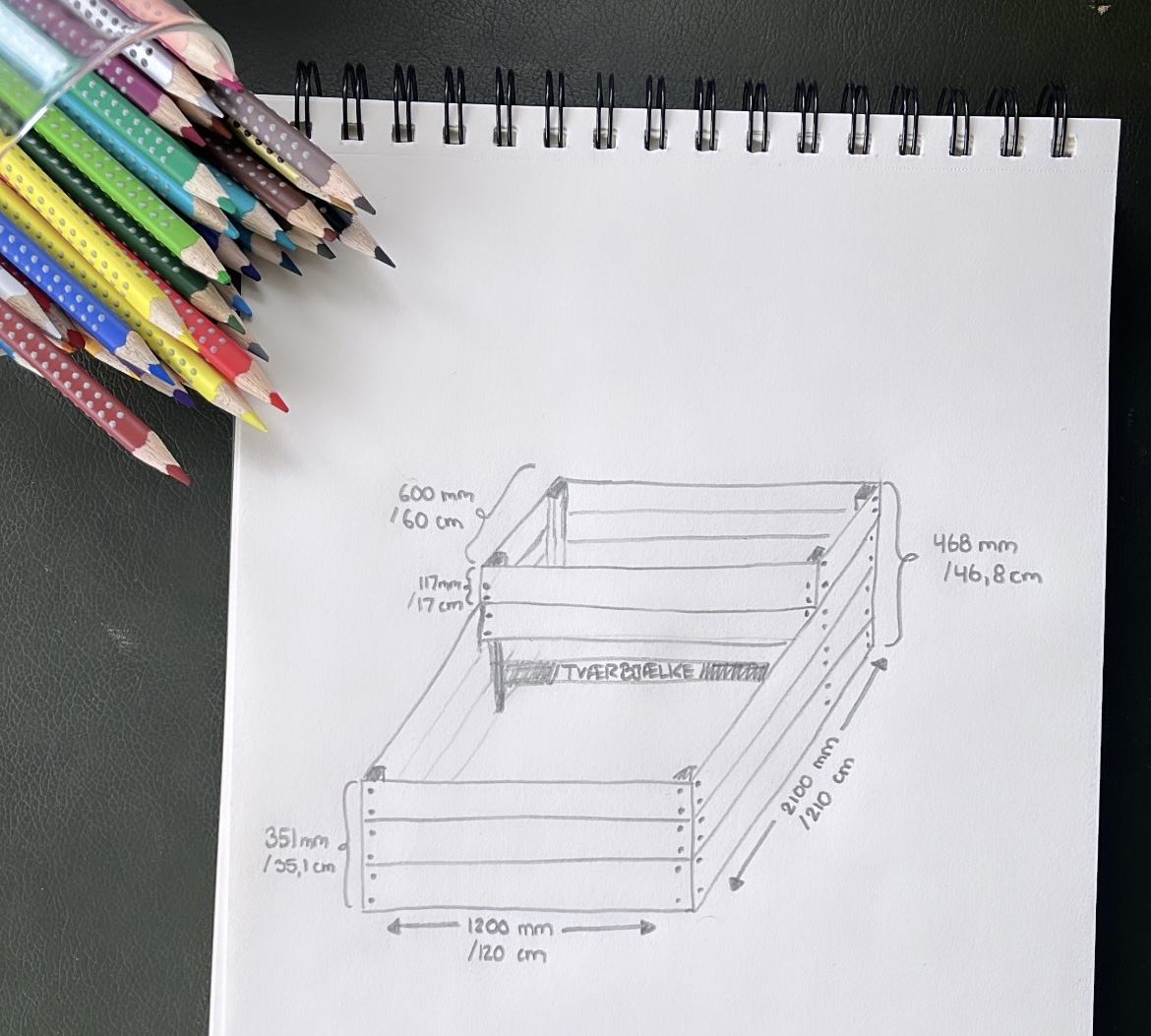 Dette er målene på MINE bede, men du kan naturligvis vælge lige præcis de mål du ønsker og som passer ind i din køkkenhave. Det er noget af det skønne ved selvbyg. Tænk blot over det med at kunne nå ind i bedet.