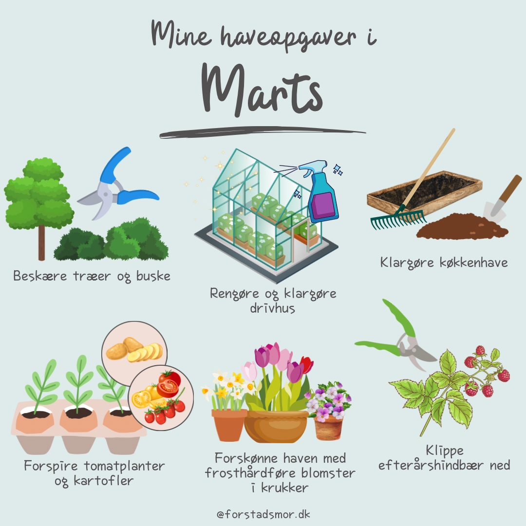Marts kalder jeg også for “tålmodighedens måned”, for nøj hvor har jeg brændt fingrene på at være for hurtigt i gang som nybegynder. Det er ærgerligt med både spildte penge, tid og kræfter. Der er dog stadigt opgaver du kan kaste dig over, som vil gøre haven nemmere at holde senere på sæsonen.