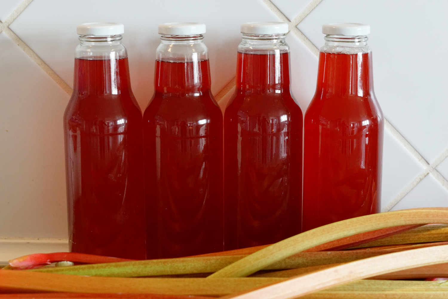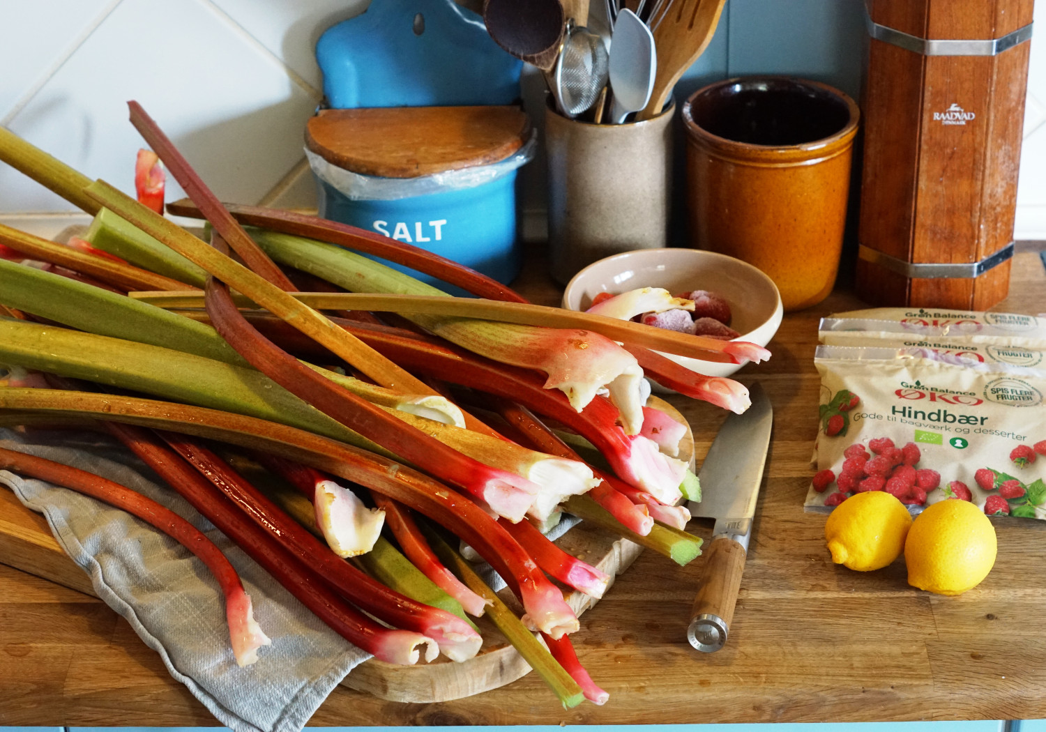 Rabarber og hindbær er en kombination, der komplimenterer hinanden godt. Rabarberens syre og hindbærrets sødme står perfekt sammen, og så får saften en skøn farve.