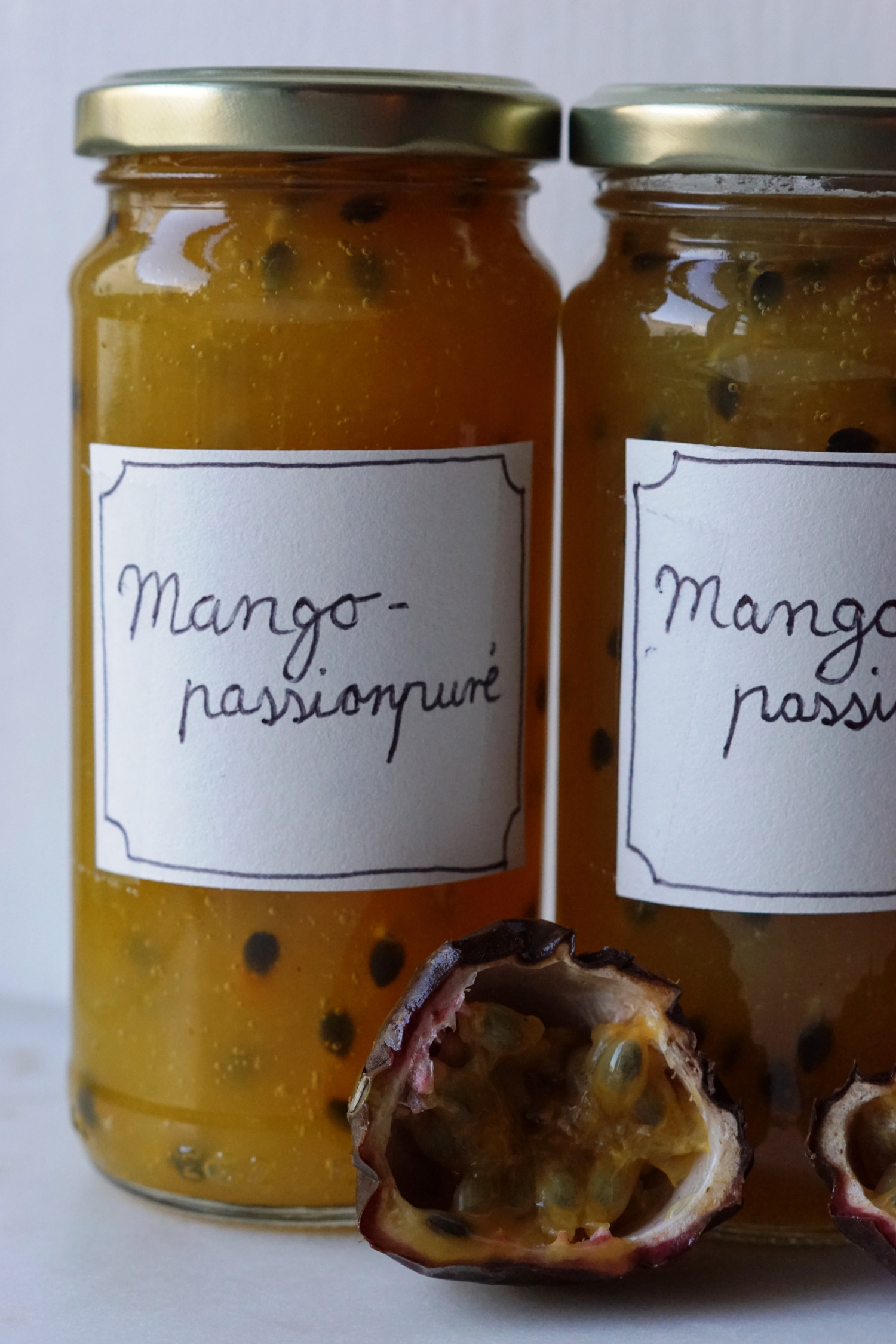 Denne mango-passionspuré har en perfekt balance mellem sødme og syre og et skønt knas med de hele passionskerner i. Den er en af mine absolutte favoritter ovenpå skyr, græsk yoghurt eller chiagrød.