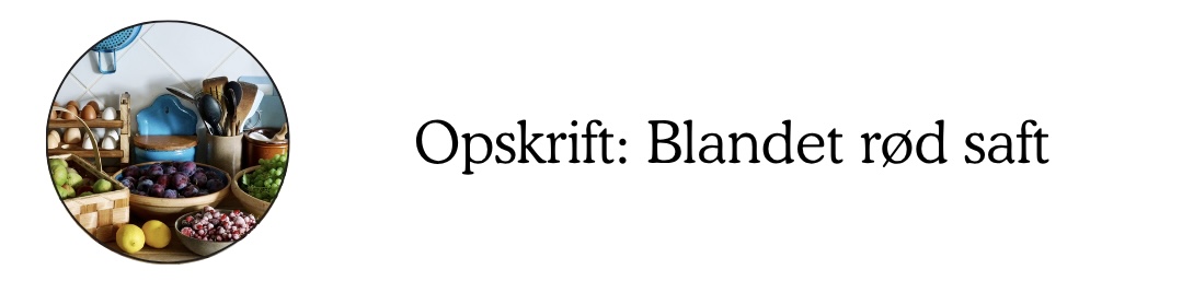 Derudover så har jeg været i gang med ét af de vigtigste projekter til mit vinterforråd, som er en klassisk rød blandet saft. Det er mine børns absolutte favorit, så den skal der laves virkelig meget af. Opskriften har også været meget efterspurgt i min indbakke, og nu har jeg endelig fået den delt.