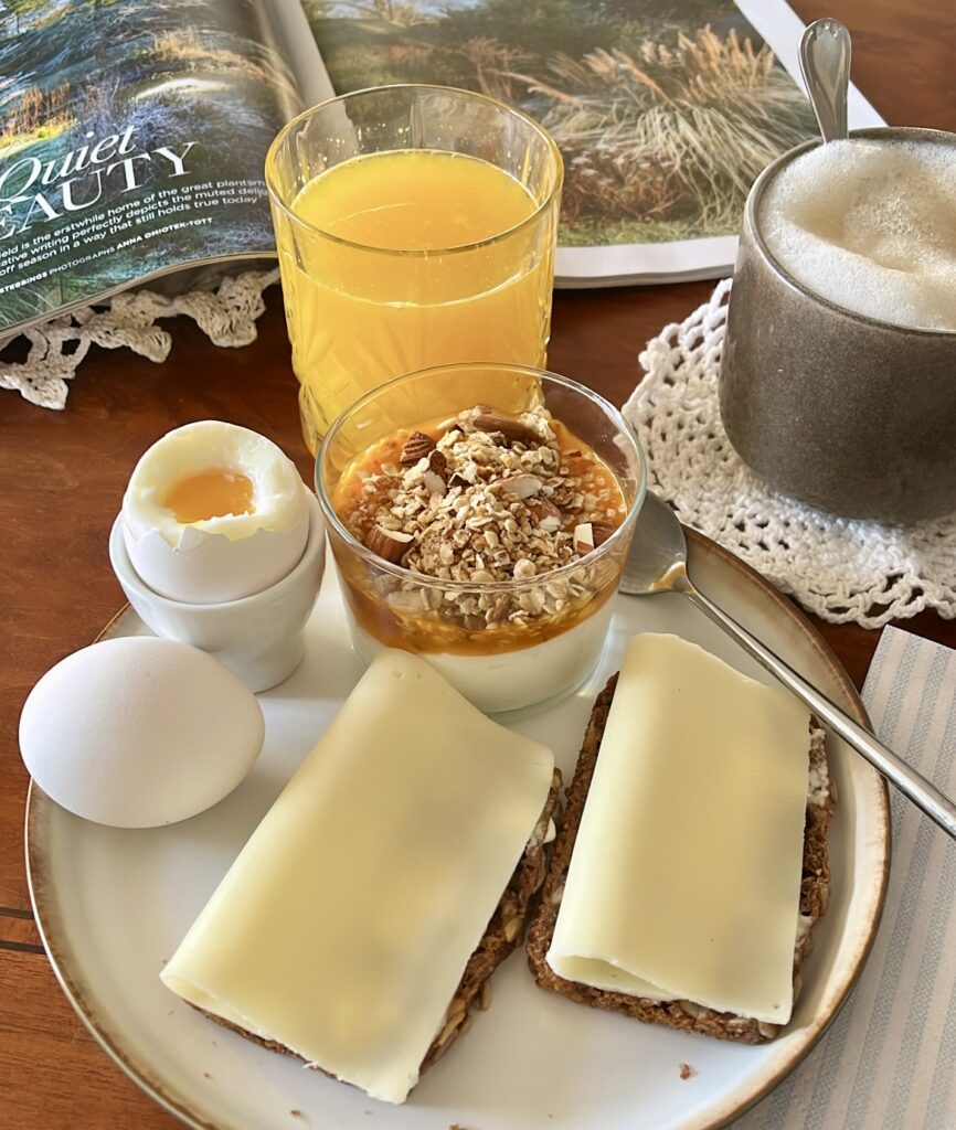 Her får du opskriften på min helt simple granola med skøn ristet smag. Og den er virkelig helt simpel – for så kan man nemlig tilføje rosiner, flere kerner, frysetørrede bær eller noget helt fjerde, og få lige den granola man ønsker. Dog må jeg erkende, at jeg oftest blot laver den sådan her. Og når jeg så skal spise den, så supplerer jeg med noget frugtkompot af en art ovenpå græsk yoghurt/skyr og måske et drys chiafrø. I glasset på billederne her er den serveret med vaniljeskyr og havtornsirup.