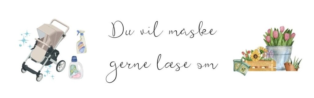 Én af de ting jeg dog har kastet mig over denne uge, det er at gøre vores søskendevogn ren. Den trænger virkelig! Og så skal den faktisk pakkes væk de næste 4 måneders tid indtil jeg igen skal bruge den til baby og vores (lige nu) yngste på 2 år. Så jeg har kastet mig ud i en “deep clean” hvor jeg skiller den helt ad, fjerner alt tekstil og vasker det i maskine med desinficerende middel. Den støvsuges og stellet vaskes og smøres. Det er en lidt større operation, og jeg vil gerne have nogle plusgrader udenfor, hvor stellet skal vaskes af. Så den del må vente lidt. Indtil videre har jeg ordnet alle tekstildele og tørret dem og pakket dem væk. Jeg plejer at give klapvognen en mere simpel (men dog grundig) rengøring, som du kan læse om nedenfor her. Det er helt naturligt at klapvogne og barnevogne vil få mug (og bliver jordslåede) i det klima vi bor i. Især hvis vognene af og til parkeres udenfor. Det er kombinationen af fugt i luften og så områder på vognene med mikroorganismer pga. madrester når børnene spiser i vognen, fedtede fingre og savl. Det er ikke til at komme udenom, men jeg anbefaler at man er opmærksom på, hvordan ens vogn ser ud og løbende gør den rent samt opbevarer den lunt og tørt så meget som muligt.