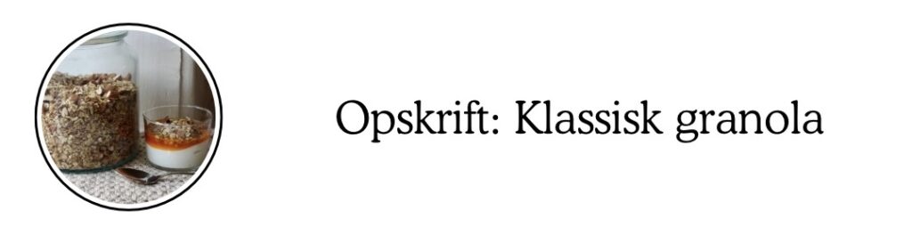 Jeg har langt om længe fået trykket “udgiv” på min opskrift på granola, som jeg har kaldt “klassisk granola” fordi den er super simpel og du kan bruge den som udgangspunkt for at lave en masse forskellige variationer.