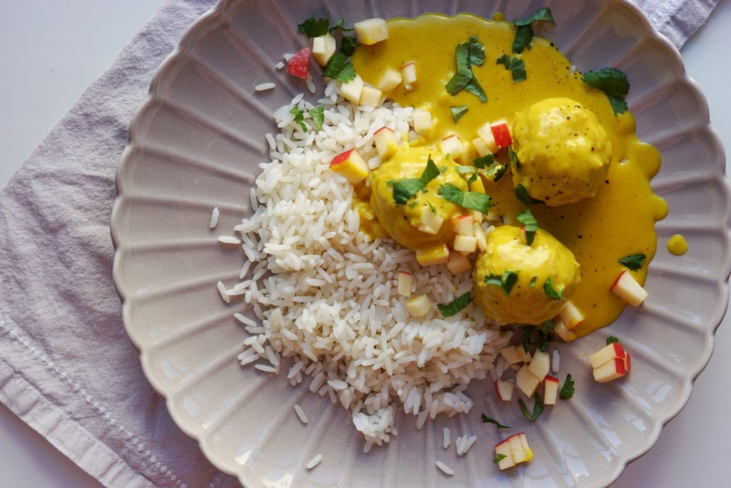 En rigtig børnefamilieklassiker! Bløde store kødboller i smagfuld og cremet karrysovs serveret med ris til. Det er en ret de fleste danskere siger “ja tak” til.