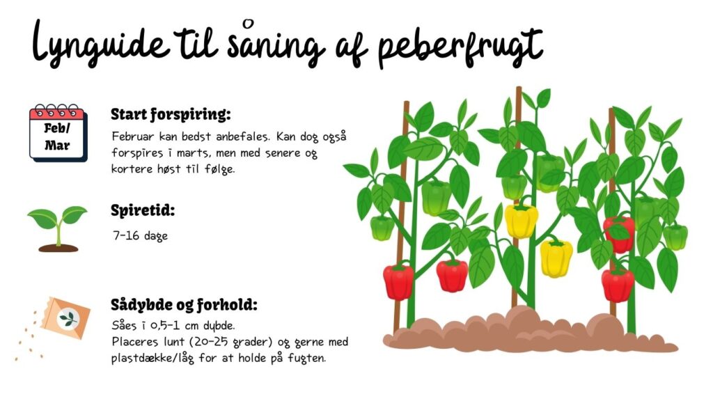 Peberfrugtplanter er dog meget langsomme til at udvikle sig, og derfor anbefales det, at de forspires som noget af det første allerede i februar.