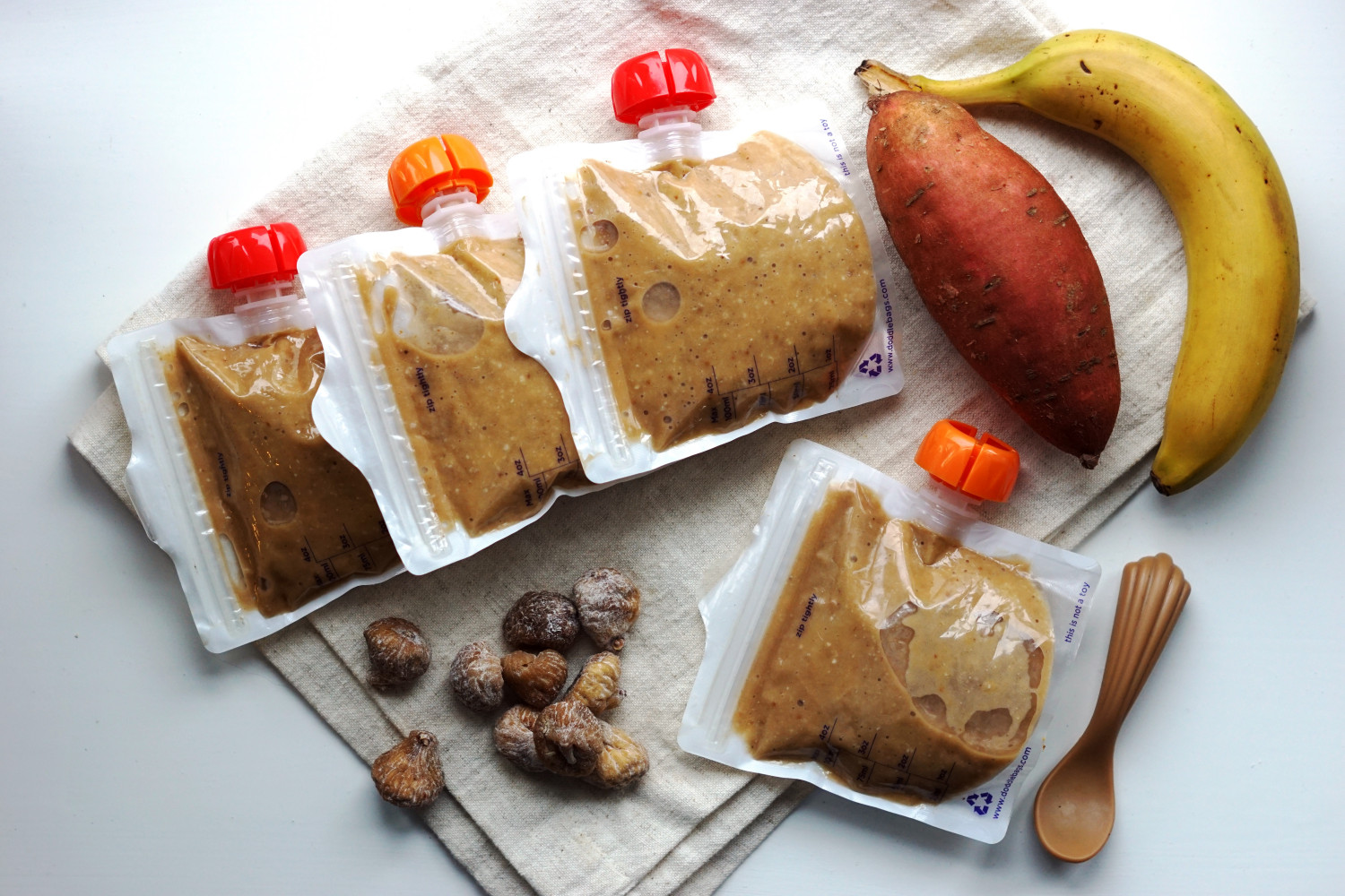 Denne opskrift giver den dejligste milde grødsmoothie med jævn og blød konsistens. Opskriften er udarbejdet til at komme i genanvendelige smoothieposer uden at smoothien bliver tyk eller klumpet af et par døgn i køleskab. Perfekt at have med på tur til det lille barn...